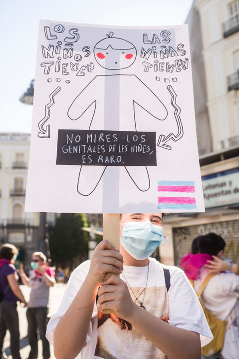 El 4 de julio de 2020, el colectivo trans se reunió en Madrid para pronunciarse en contra del manifiesto tránsfobo del actual gobierno, qye había prometido antes de asumir una Ley trans a nivel estatal, que garantizara una despatologización de las personas trans, el derecho a la autodetemrinación de género, y el cambio de sexo y nombre registral en su DNI. Hace unos meses que el movimiento feminista de España se agrieta entre la transfobia y los transfeminismos.