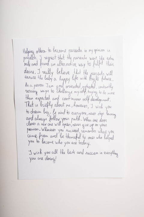 "If you are reading this greeting, it is your 18th birthday! It's an incredible feeling to know that I was able to help. I wish you the best in your life," reads one of the letters that a donor writes for a child born thanks to his donation to read in the future.